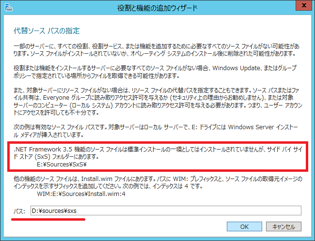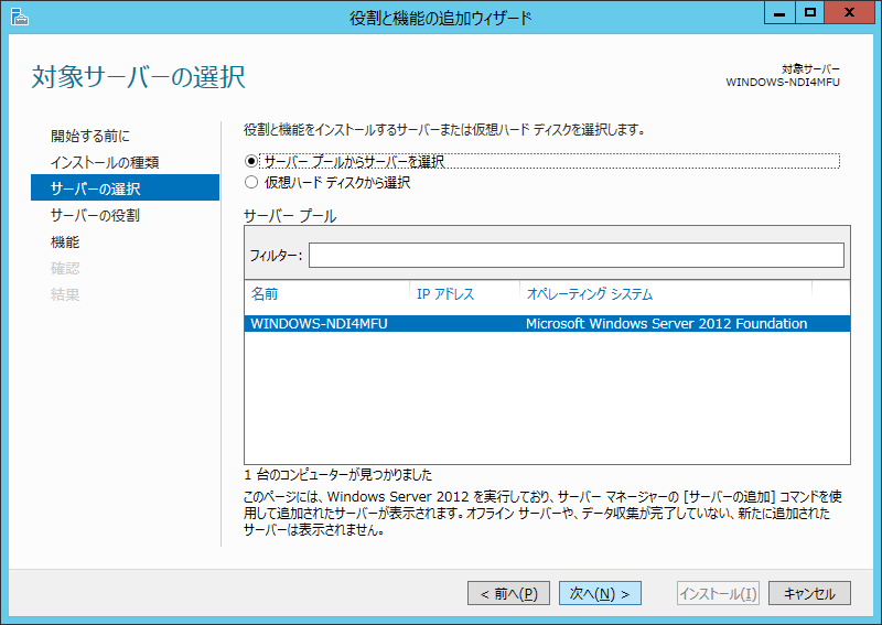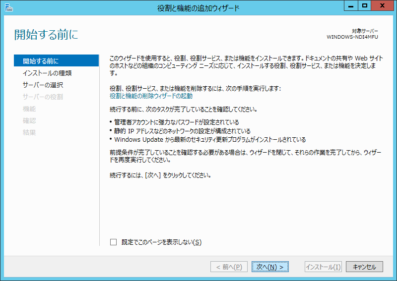 インストールにはWindows Server 2012 のインストールメディアが必要です。