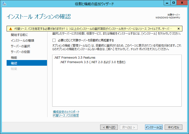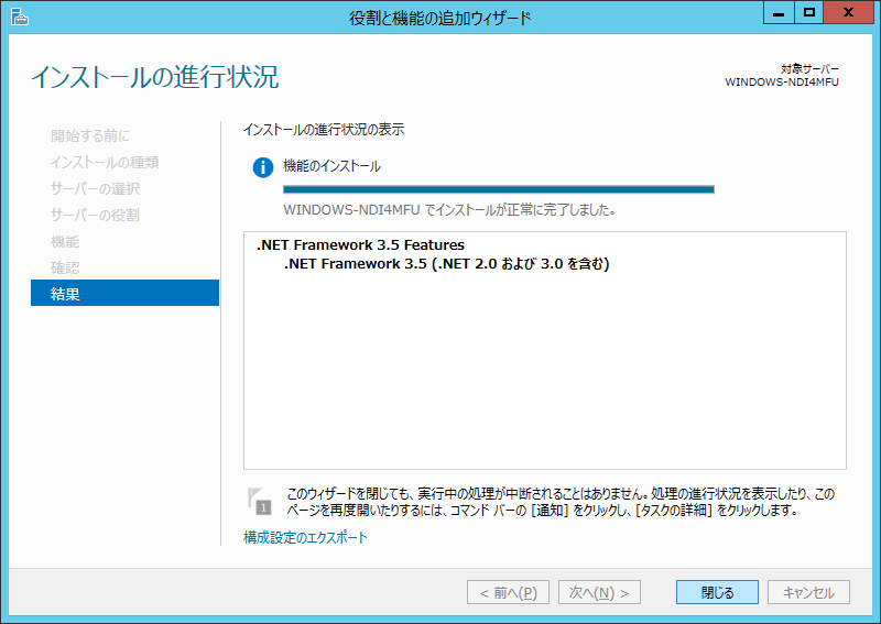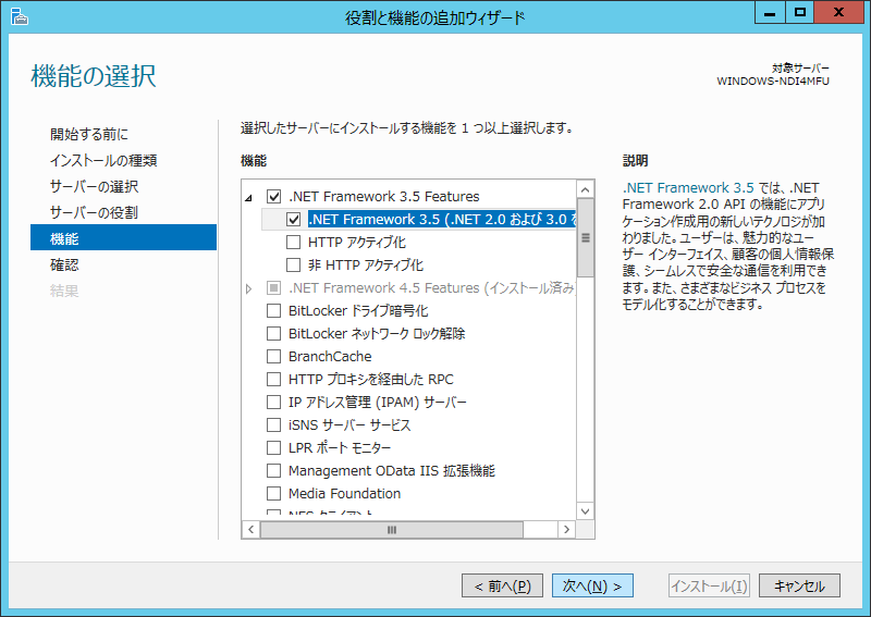 Windows Server 2012 は標準で .NET Framework 3.5 はインストールされていません。