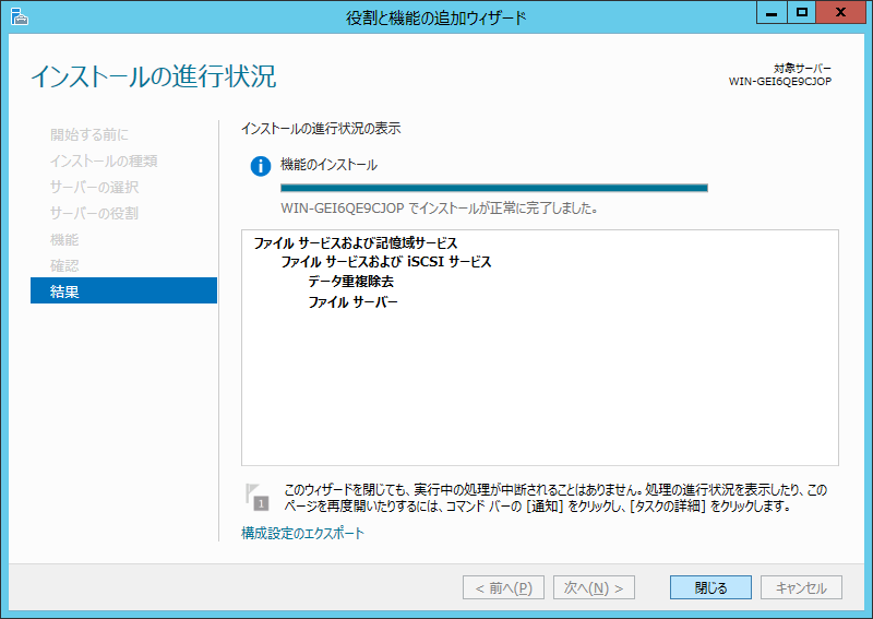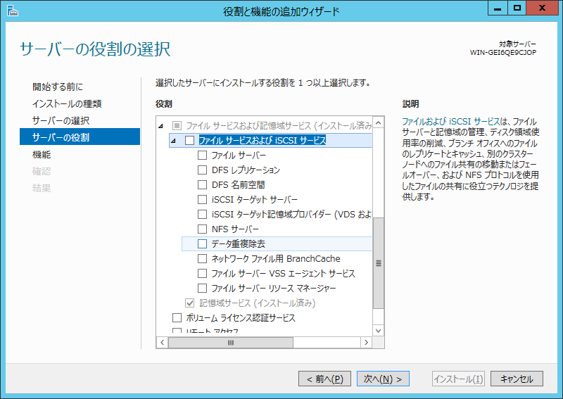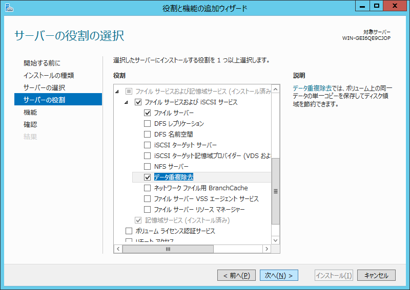Windows Server 2012 で 「データ重複除去」機能をインストールする