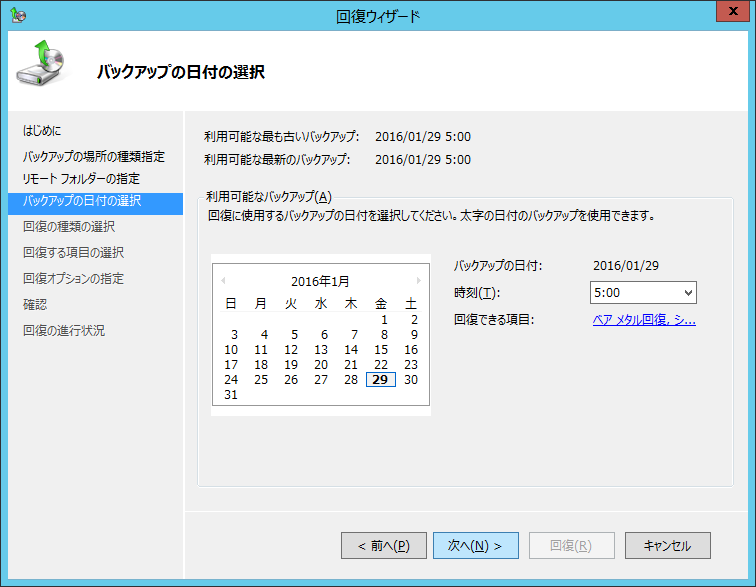 複数のバックアップセットを含むバックアップの場合は日付を指定することができます。