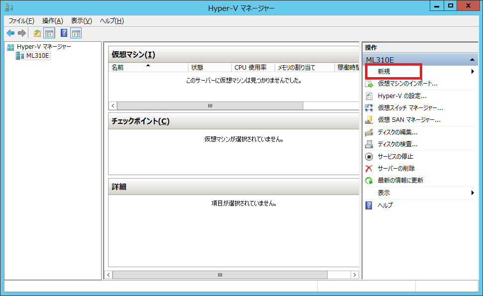 クリックで拡大 - 画面右の操作ペインで「新規」ボタンをクリックします。