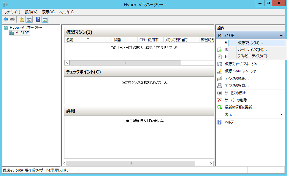 クリックで拡大 - 「仮想マシンの新規作成ウィザード」が起動します。