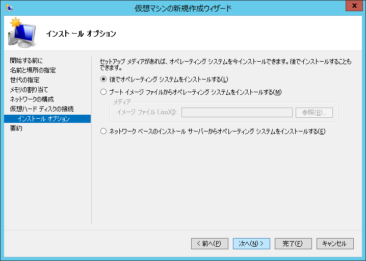 今回は後でインストールするので「後でオペレーティングシステムをインストールする」を選択します。