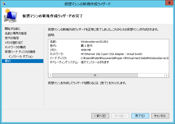 クリックで拡大 - 【仮想マシンの新規作成ウィザードの完了】