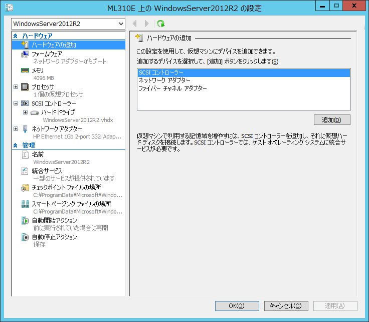 Windows Server 2012 R2 上に Hyper-V を構成する手順です。