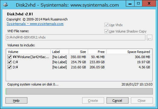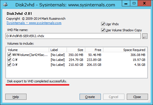 - 「Disk2vhd」が起動します。