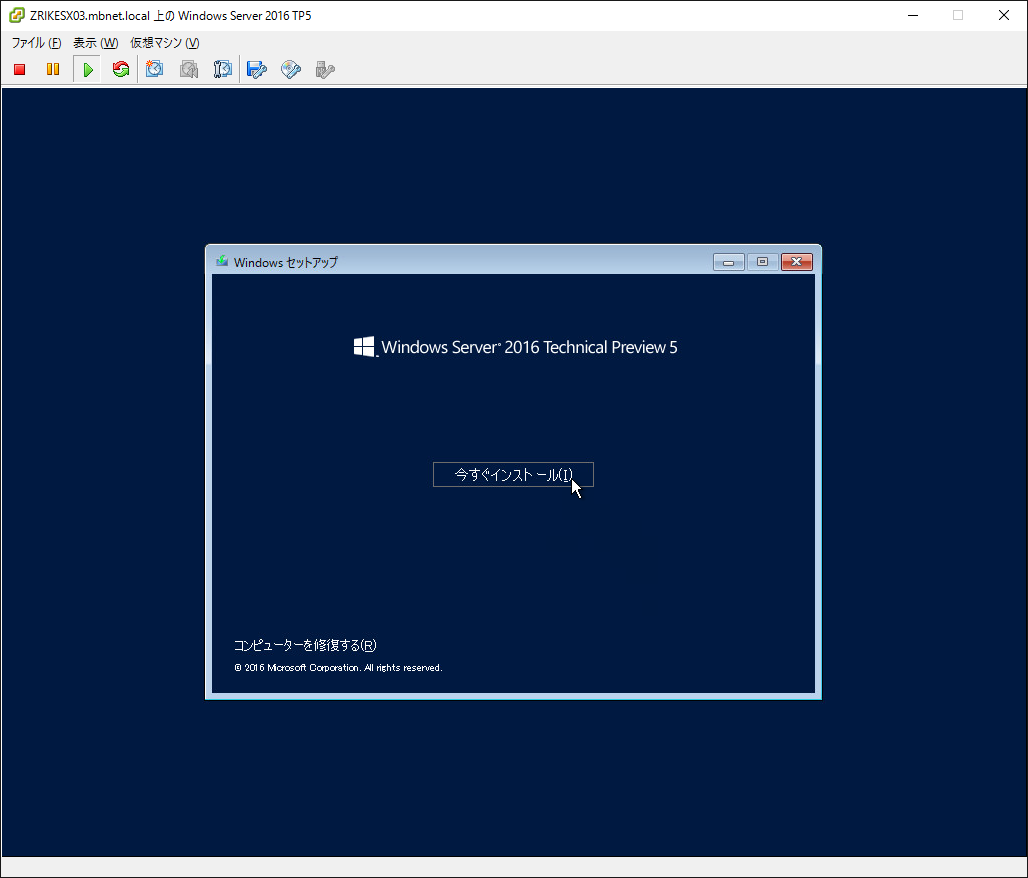 Windows Server 2016 Technical Preview 5 をインストールしてみる