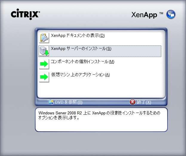 XenApp 6.0 for Windows Server 2008 R2 インストール