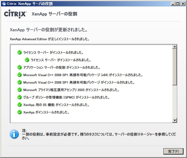 XenApp 6.0 for Windows Server 2008 R2 は .NET Framework 3.5 SP1 が必要です。