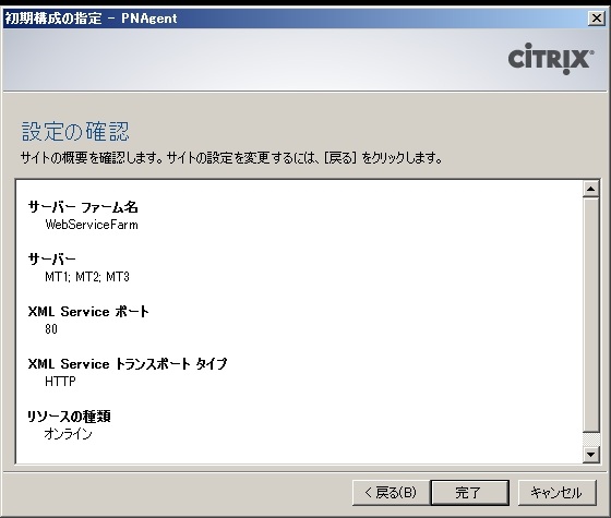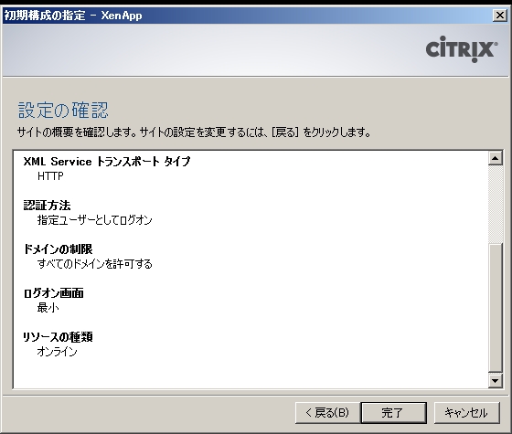 - XenApp Web Service サイトを構成します。