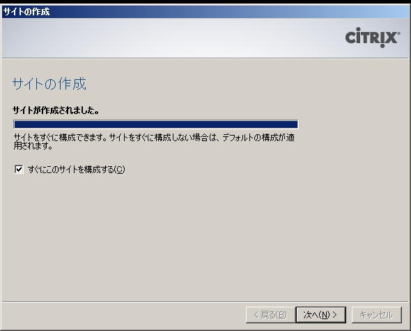- サイトの作成が完了したら「すぐにこのサイトを構成する」にチェックを入れて「次へ」をクリックします。