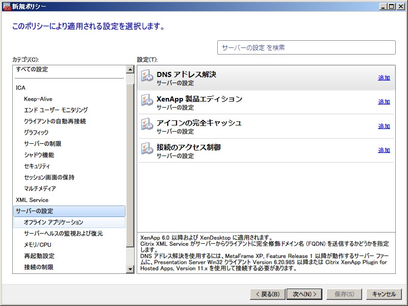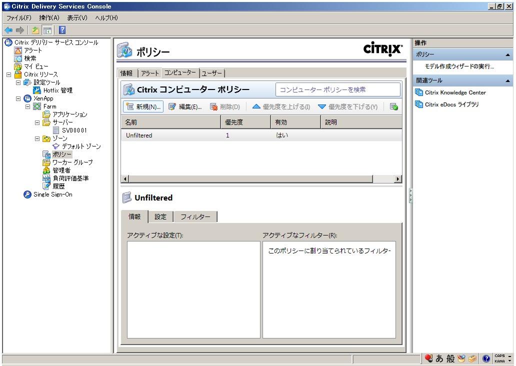 XenApp 6.0 ポリシー設定(コンピューター)