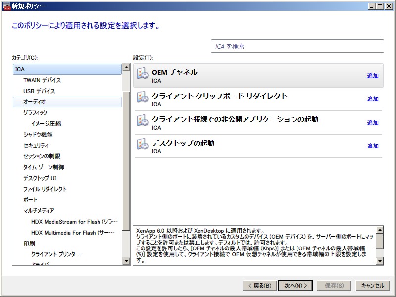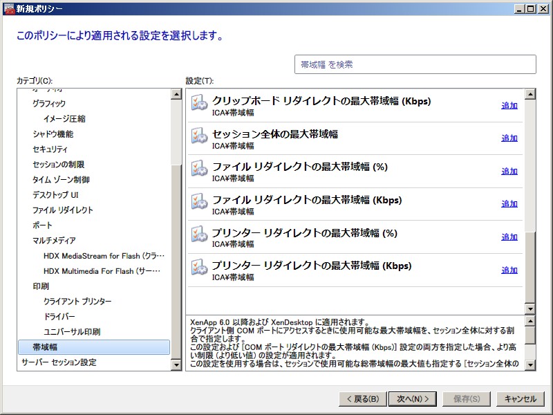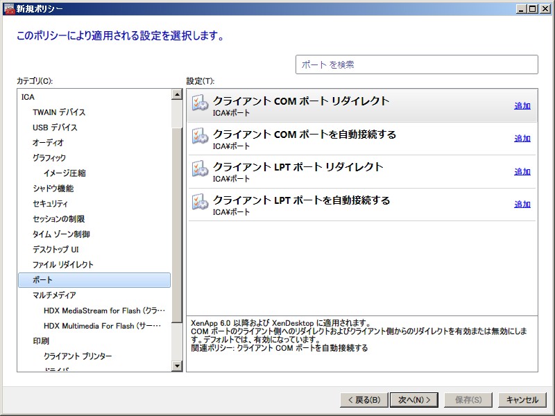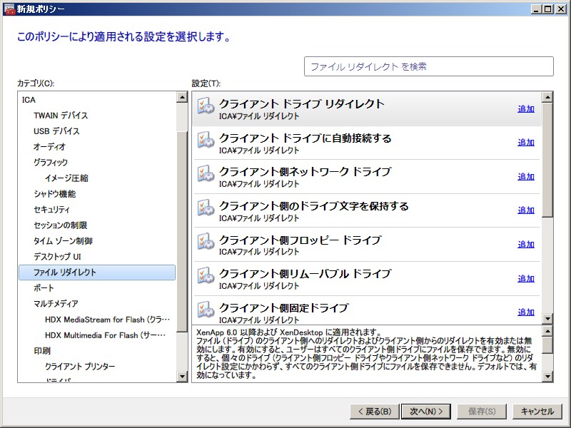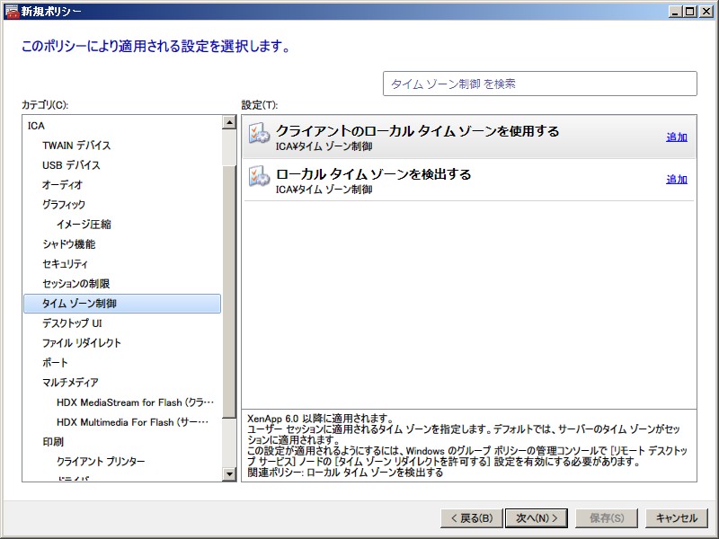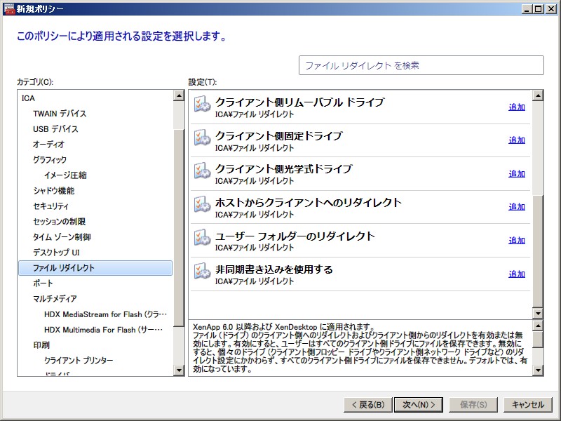 XenApp 6.0 ポリシー設定(ユーザー)