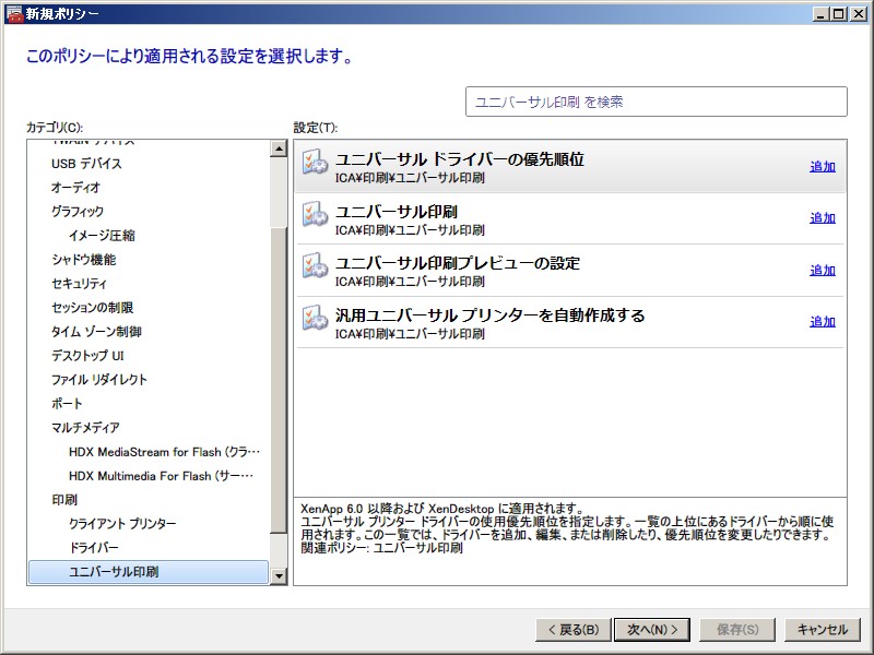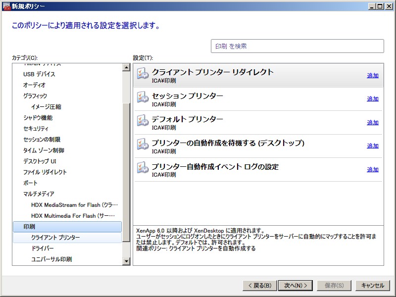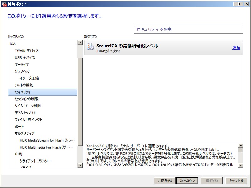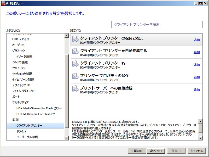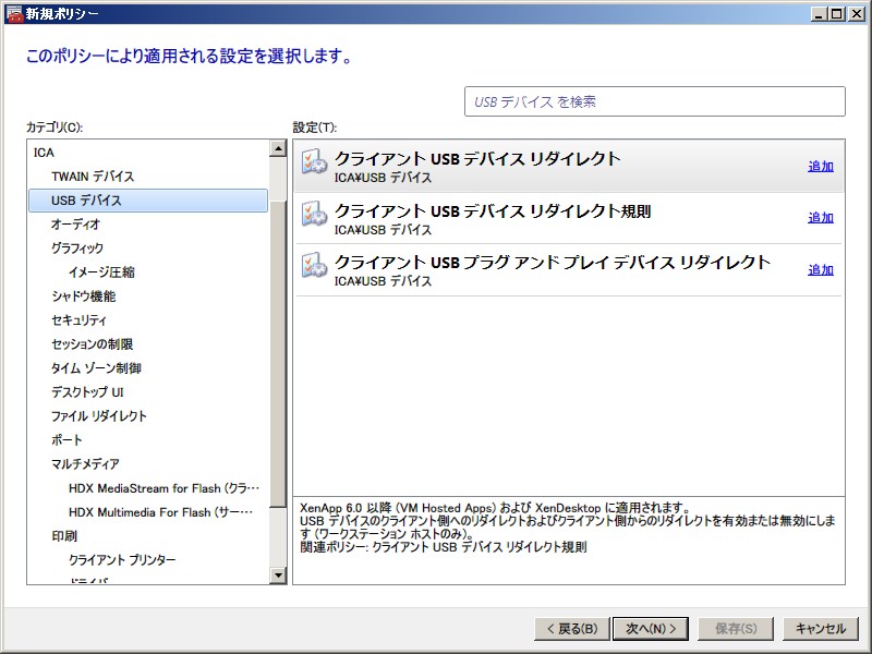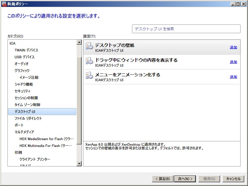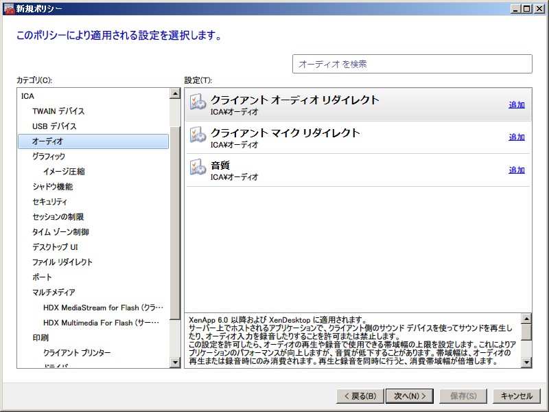 XenApp 6.0 ポリシー設定(ユーザー)