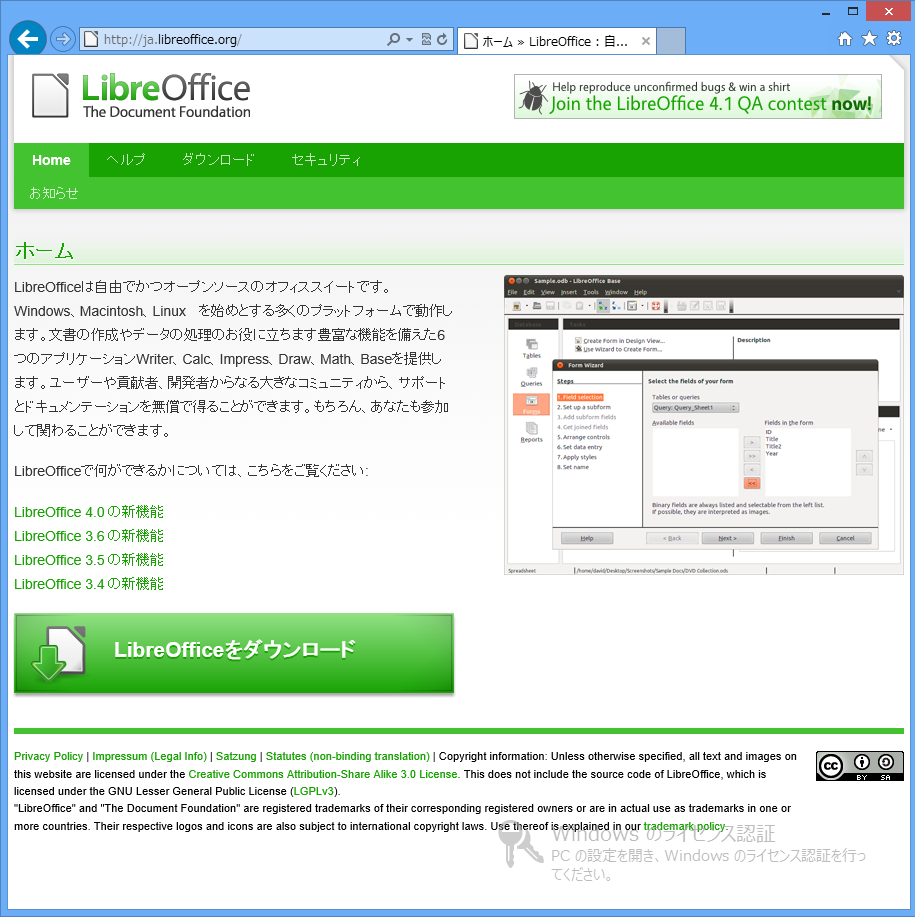 Windows 8 x64 環境に Libre Office をインストールする手順です。