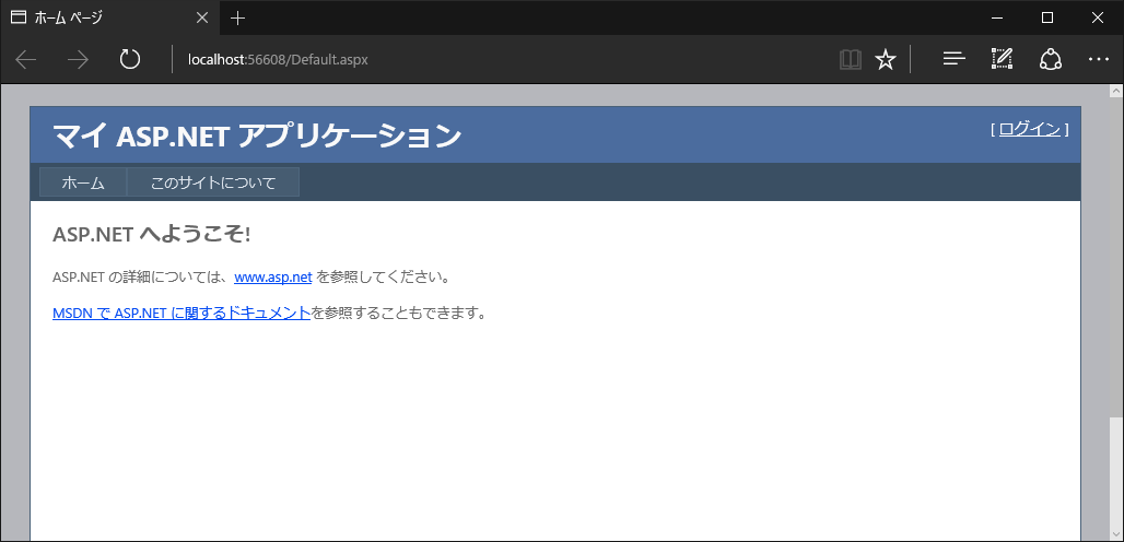 Windows 10 の環境で ASP.NET の開発を行い、デバッグ実行すると Microsoft Edge が起動します。