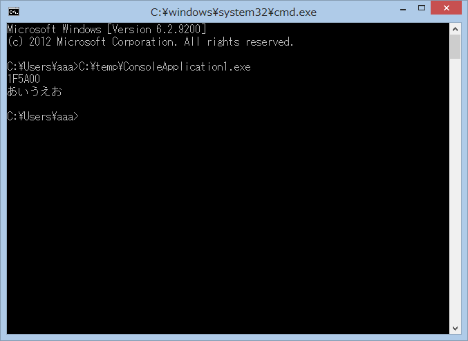 コンパイルしたものをコマンドプロンプトから実行してみます。