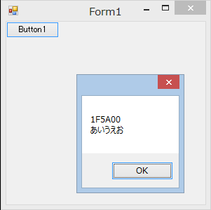 今回はWindows フォームアプリケーションにボタンを1個貼り付けてClickイベントに実装しました。Dim psi As New ProcessStartInfo() '実行するファイルを指定する psi.FileName = "C:\temp\ConsoleApplication1.exe" 'コンソールウィンドウを開かない psi.CreateNoWindow = True 'シェル機能を使用しない psi.UseShellExecute = False '標準出力をリダイレクト psi.RedirectStandardOutput = True 'アプリケーションを実行 Dim p As Process = Process.Start(psi) '出力の読み取り Dim output As String = p.StandardOutput.ReadToEnd() '改行コードを修正 output = output.Replace(vbCr + vbCrLf, vbLf) 'メッセージボックスに出力 MessageBox.Show(output) 'Processを破棄 p.Close() p.Dispose()