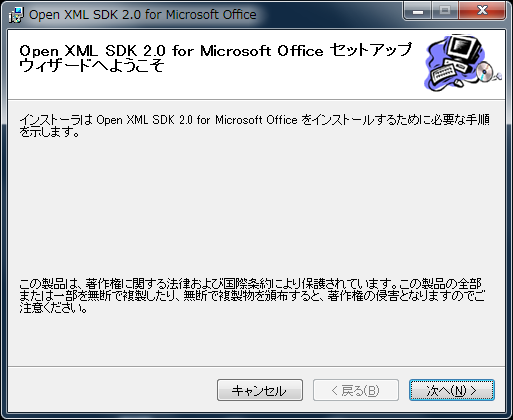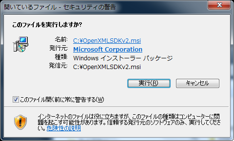 クリックで拡大 - ダウンロードした「OpenXMLSDKv2.msi」をダブルクリックして起動します。