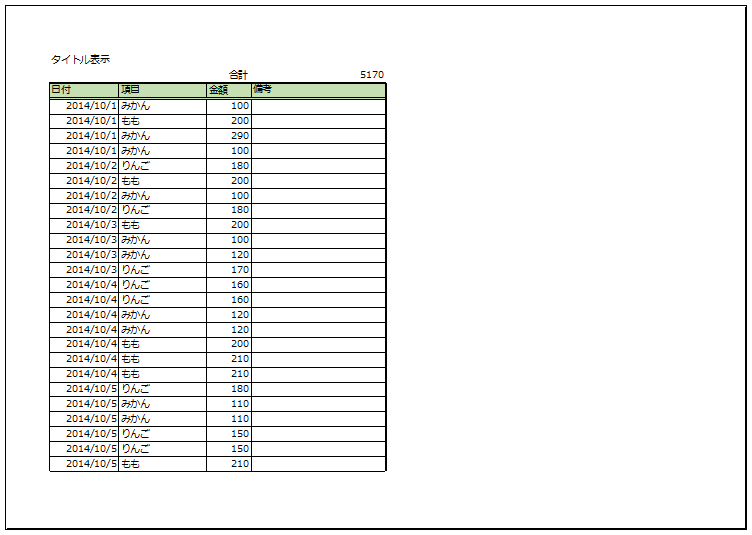 ヘッダを使わないで毎ページに印刷する方法を試してみます。