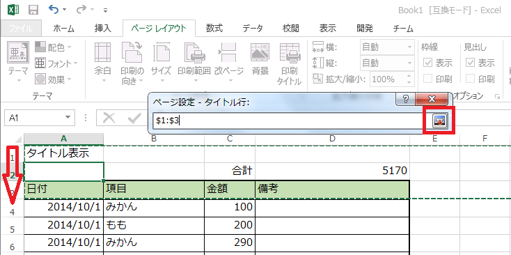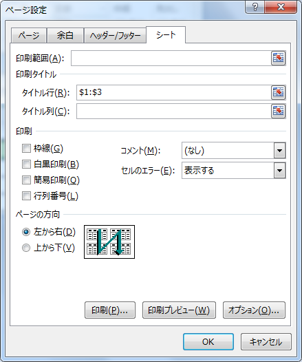 Excel で一覧表を作成する際などですが、ページの先頭にある行を毎ページに印刷したいことがあります。