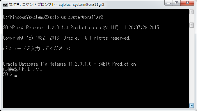 この状態ではデータベースサーバー上で「sys」アカウントでのみログインできます。