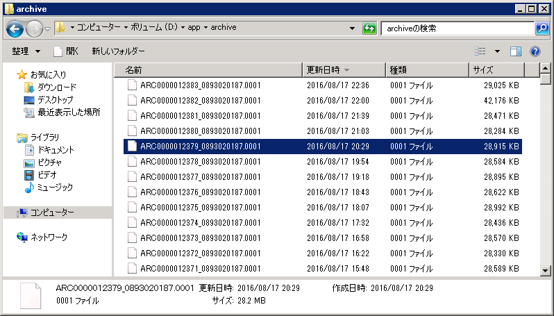 フォルダーは「D:\app\archive」などです。