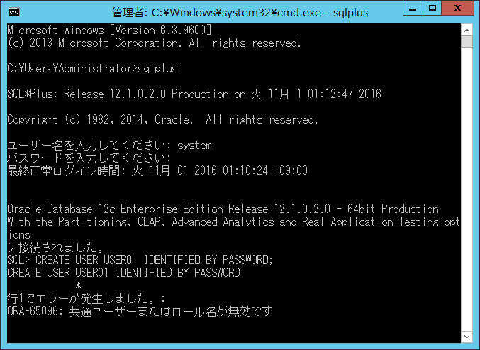 ORA-65096:共通ユーザーまたはロール名が無効です