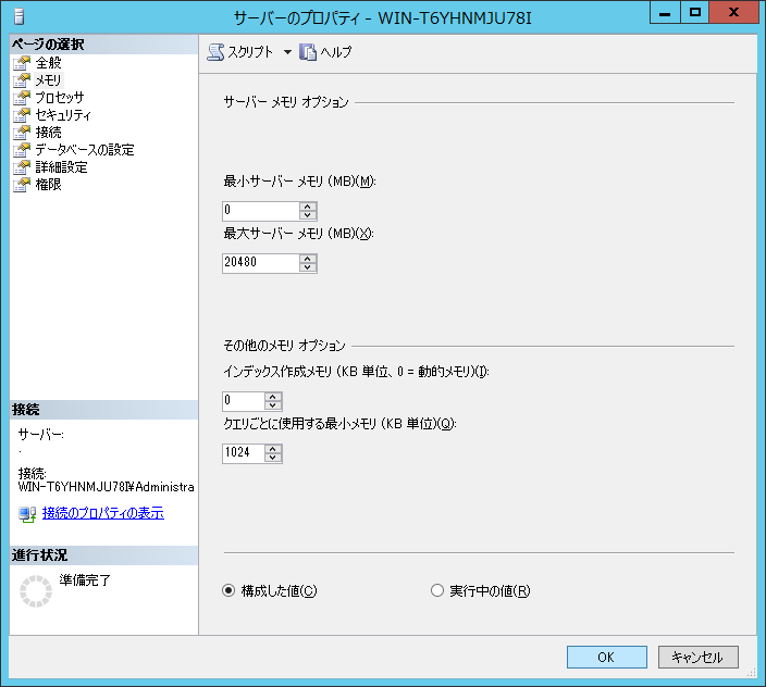 SQL Server の使用メモリの上限を設定する