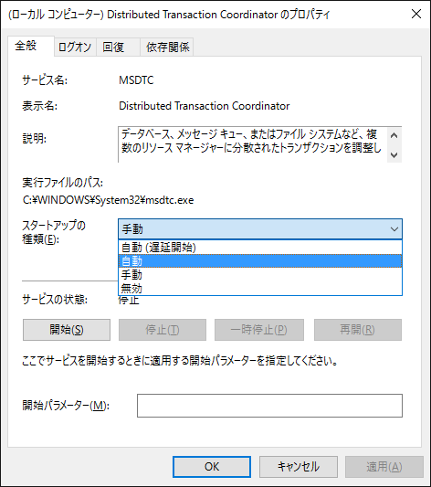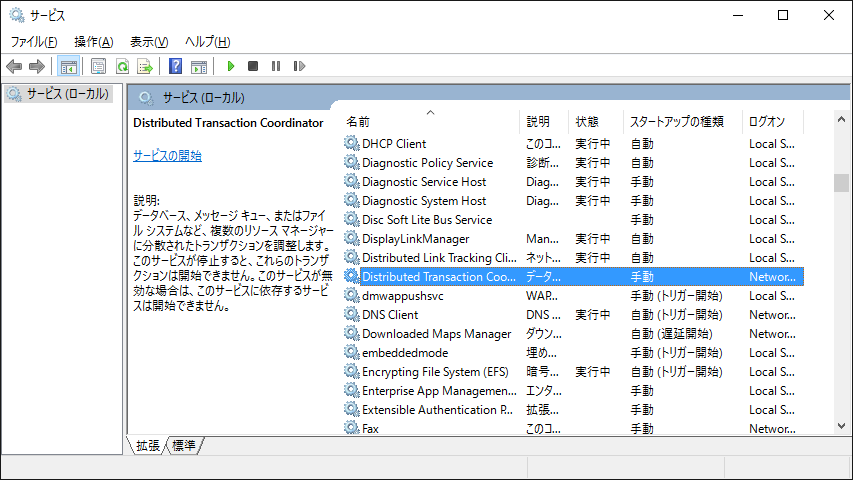 このエラーは「MSDTC(Distributed Transaction Coordinator)」サービスが開始されていないことで”使用できない”ということになり、発生します。