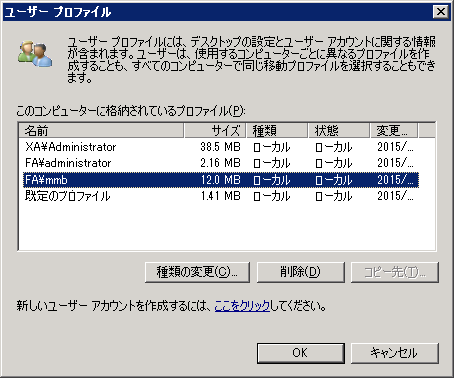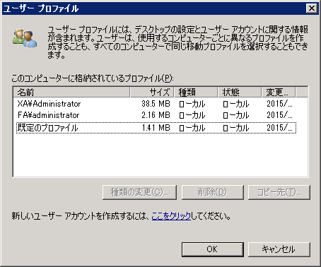 Windows Server 2008 (以降)の環境でユーザープロファイルを削除する手順です。