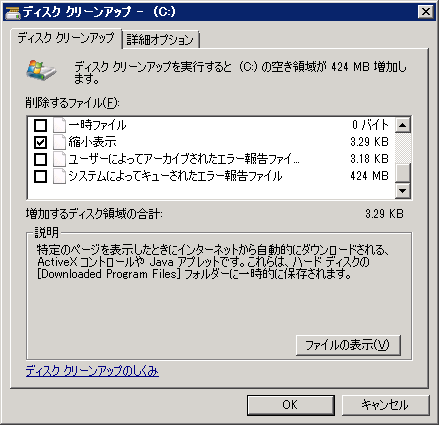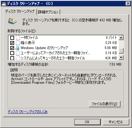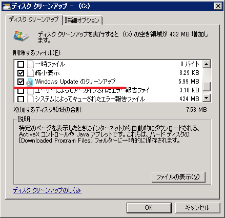 ディスクのクリーンアップをする際にこの「Windows Update のクリーンアップ」にチェックを入れると Windows Uddate 関連の不要なファイルを削除してくれます。