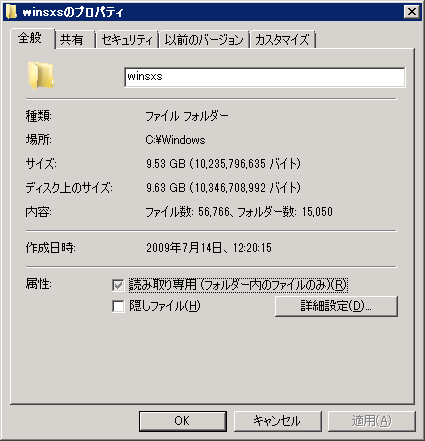 Windows Server 2008 をインストールしたときにはこんな大容量なフォルダーはなかったはず。。。
