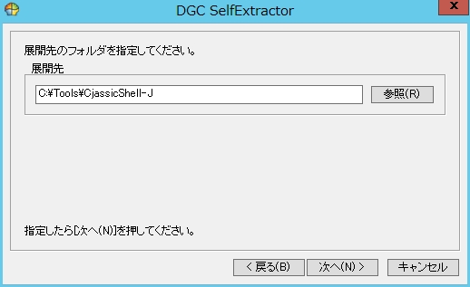 ダウンロードした「ClassicShell-J.exe」を実行してファイルを展開します。