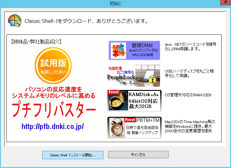- 「ClassicShell-J」をダウンロードします。