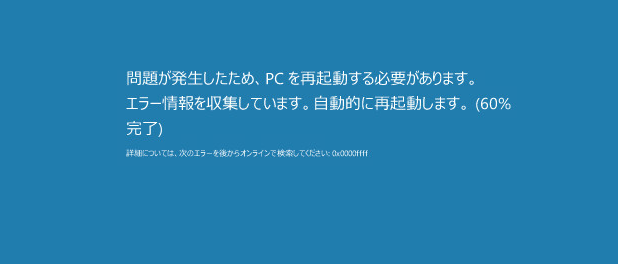 ブルースクリーンというとこれまでは真っ青な青い画面でしたがWindows Server 2012 から(2008 からかもしれません)少しやさしい色に変わったようです。
