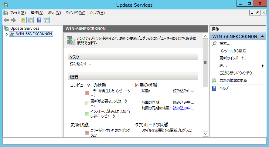 WSUS の管理コンソールで確認しようとしたのですが、サーバーへの接続もできない状況です。
