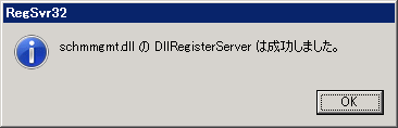 「regsvr32 schmmgmt.dll」と入力して「OK」をクリックします。