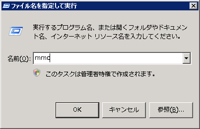 「mmc」と入力して「Ok」をクリックします。