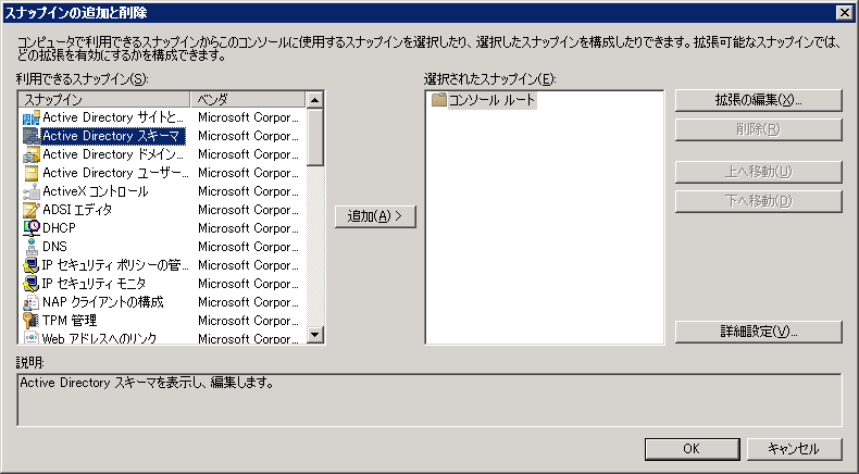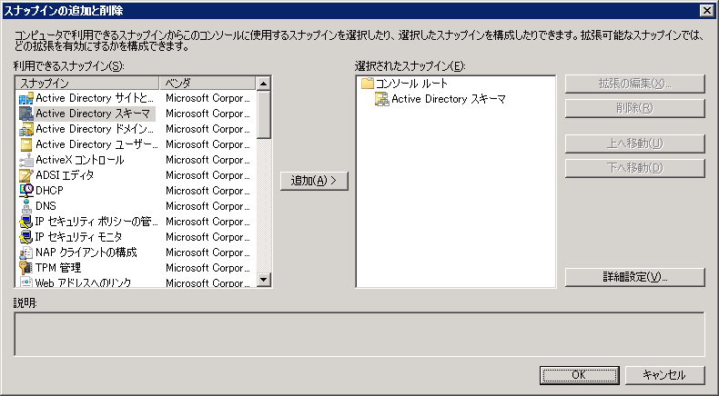 [TechNet] Active Directory スキーマ スナップインをインストールする