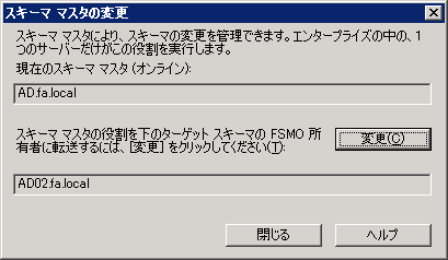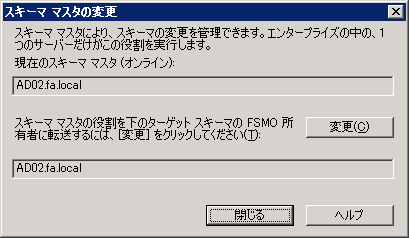 上の段が現在のスキーママスタ、下の段(変更先)が現在接続しているドメインコントローラが表示されています。