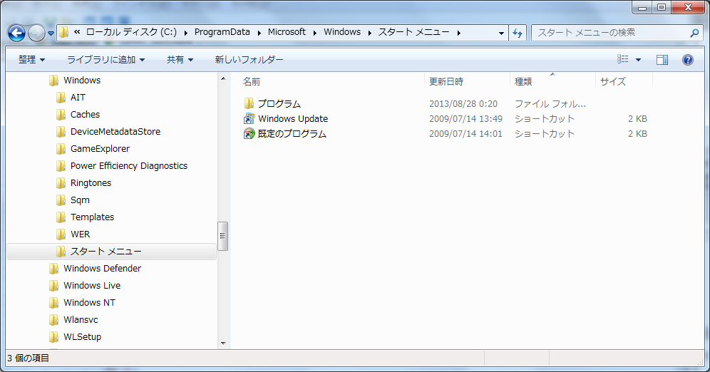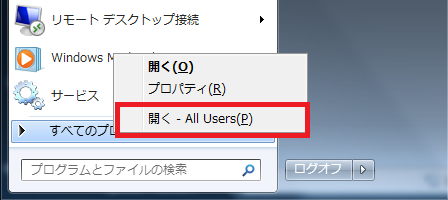 Windows 7 で AllUsers のスタートメニューフォルダの場所