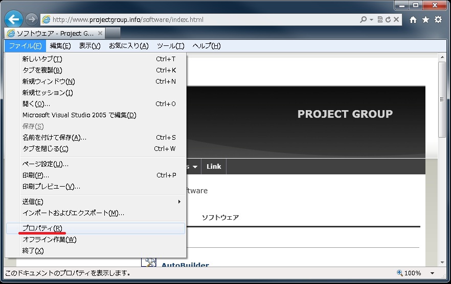 メニューバーが表示されるので [ ファイル ] - [ プロパティ ] をクリックする。