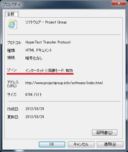 Internet Explorer 9(IE9)でゾーン情報を確認する方法