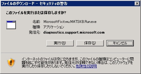 クリックで拡大 - [ファイルのダウンロード - セキュリティの警告]が表示されたら「実行」をクリックします。