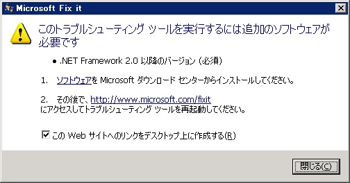 なお、これを実行するには .NET Framework 2.0 以上がインストールされている必要があるのでインストールされていない場合は事前にインストールしておきます。