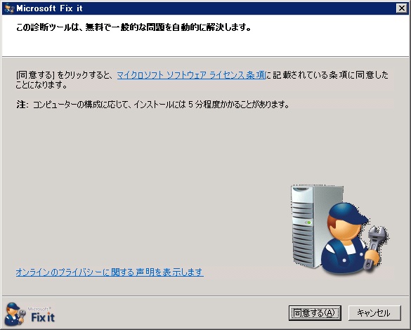 クリックで拡大 - 診断ツールが起動したら「同意する」をクリックします。