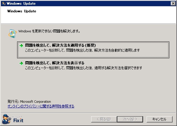 この方法で解決できなかった場合はWindows Server 2003 でWindows Update が無限に画面リロードし続ける(2) へ