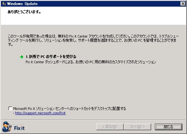 クリックで拡大 - 「閉じる」をクリックし、再度Windows Update サイトへアクセスします。