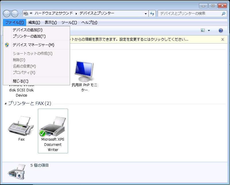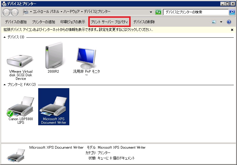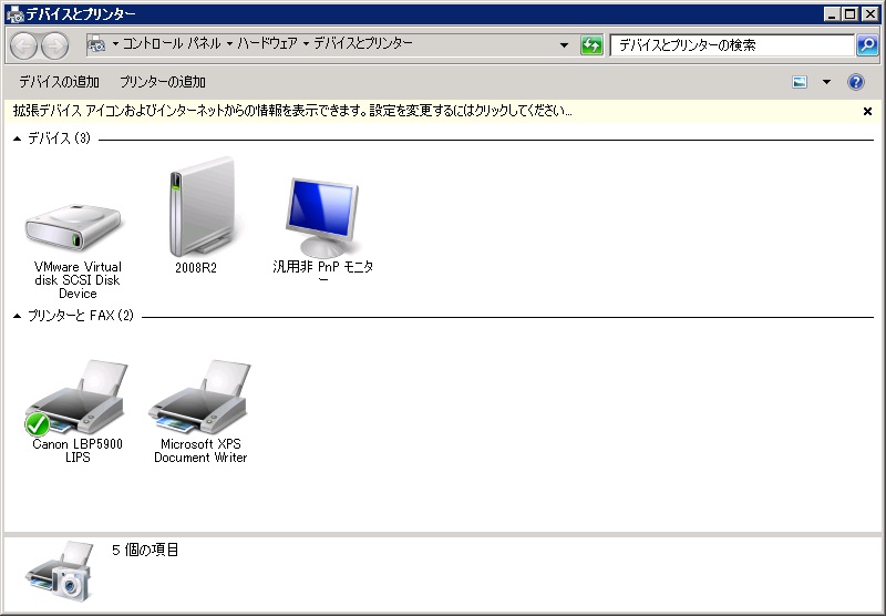 【Windows Server 2008 R2 のデバイスとプリンター】